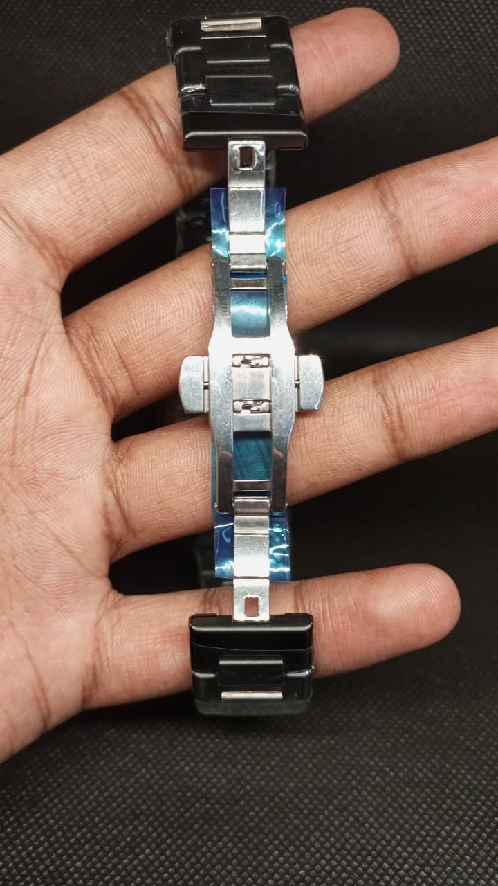 Elevate your style with the Black Arabic Aura – A premium stainless steel watch featuring a sleek black dial with elegant Arabic numerals, with butterfly lock. Perfect for everyday wear or special occasions.
